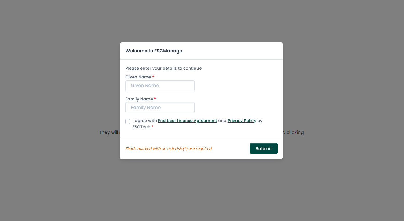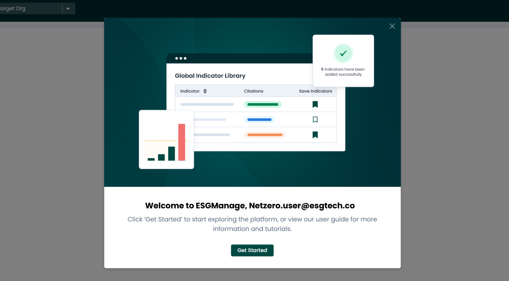 <figure><img src="https://2324002310-files.gitbook.io/~/files/v0/b/gitbook-x-prod.appspot.com/o/spaces%2FqWBsUlkr5rk4h2y1snao%2Fuploads%2Fgit-blob-c1b278d3db618d5b9fa1384f3c65d77698361596%2F2%20(1).png?alt=media" alt=""><figcaption><p>New user landing page on ESGManage.</p></figcaption></figure>